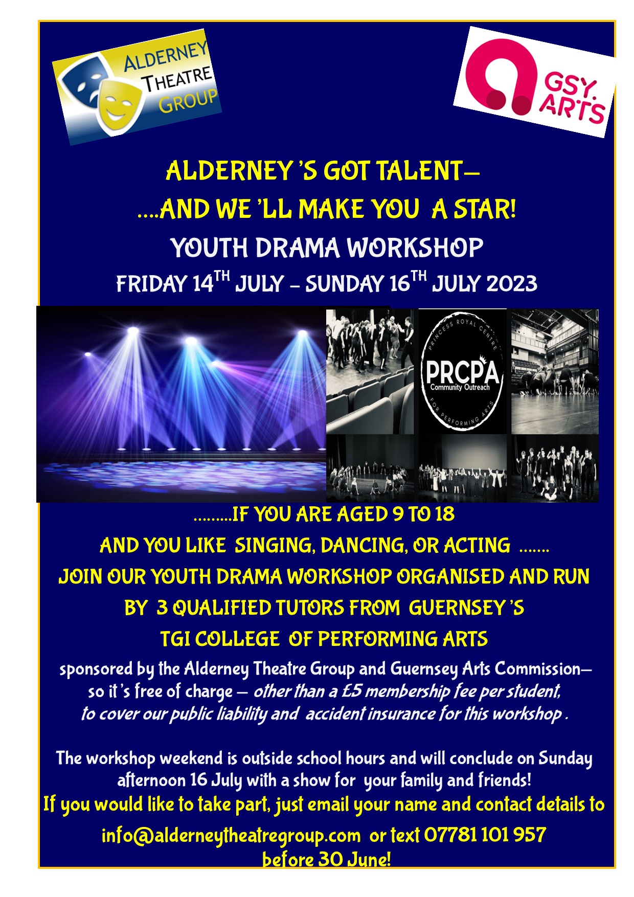 info@alderneytheatregroup.com or text 07781101 957