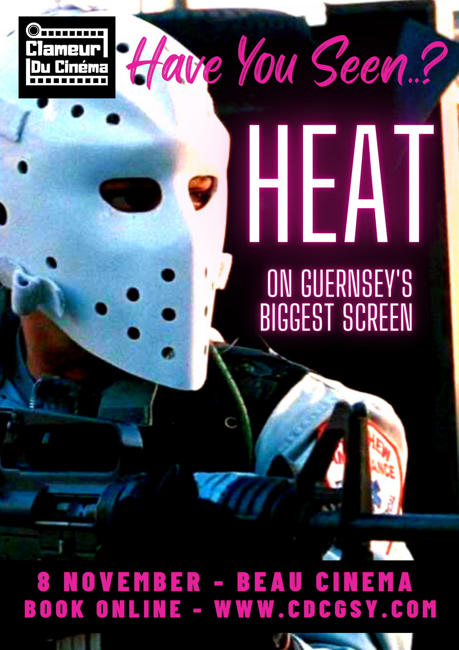 Wynter Tyson, the founder of Clameur Du Cinéma, said “Heat is one on the biggest films of the 90’s and it’s brilliant that, after 26 years, we can bring it bank to Guernsey’s biggest screen.