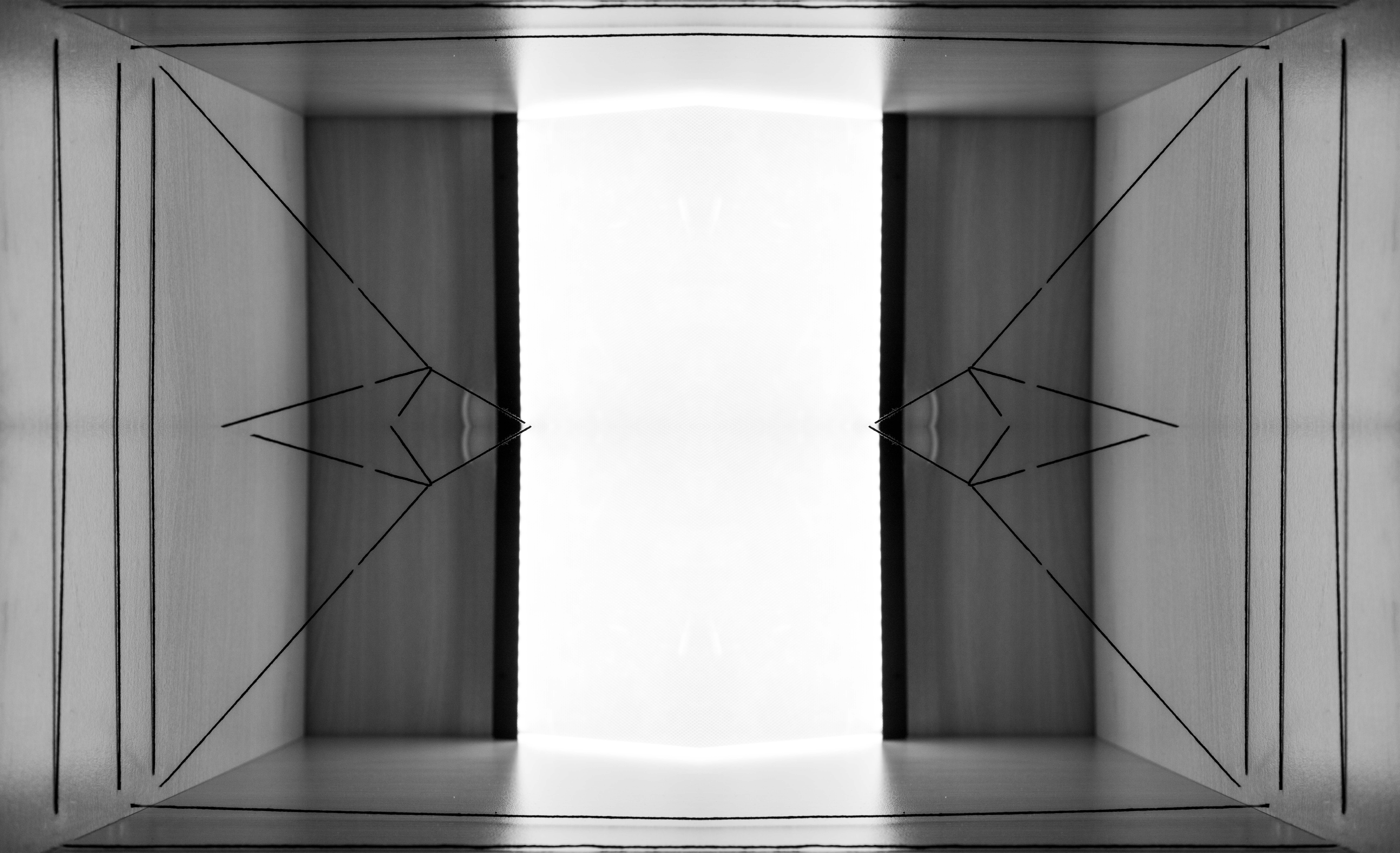 Equilibrium creates and examines sculptural forms as disparate elements which make up a whole. It examines gravity, forces and balance. The exhibition has a central sculpture which pulls everything into its centre; it revolves around itself. The sculpture also influences how the audience can experience the exhibition, as they have to orbit around this central piece, just as the printed photographs do. The prints also reflect on each other, as each wall mirrors its opposite.