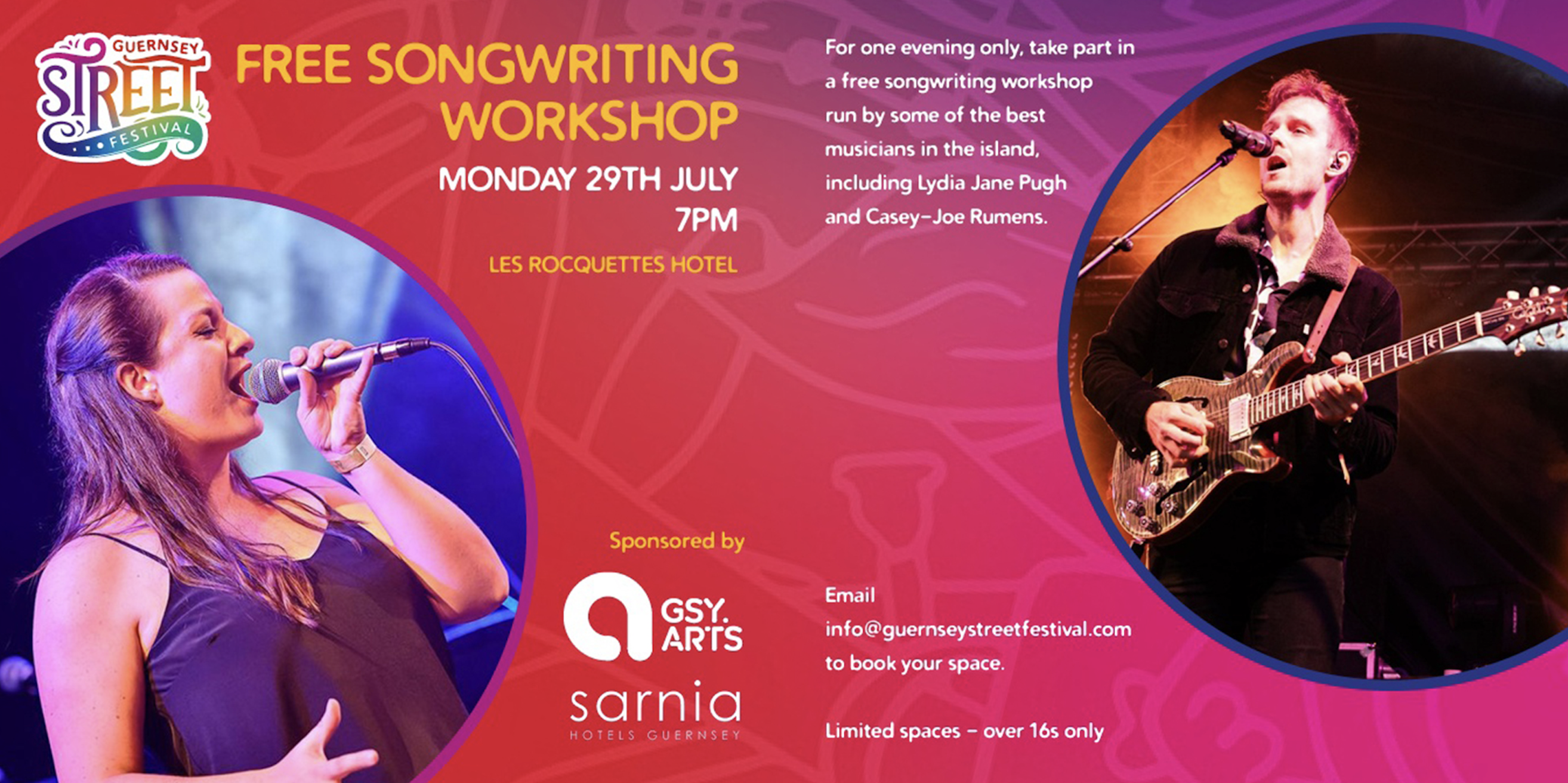 Don't miss out on our free songwriting workshop at Les Rocquettes Hotel on Monday 29th July, where some of the island's best musicians will provide expert advice on how to write beautiful melodies, memorable hooks, and catchy lyrics.