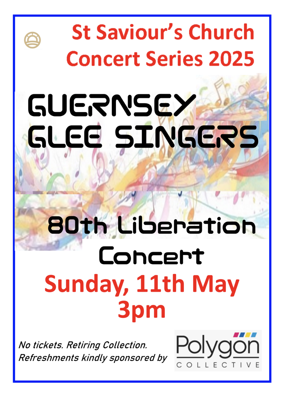 Celebrate the 80th Anniversary of the Liberation with The Guernsey Glee Singers and their guests, on Sunday 11th May, 3pm at St Saviour’s Church.