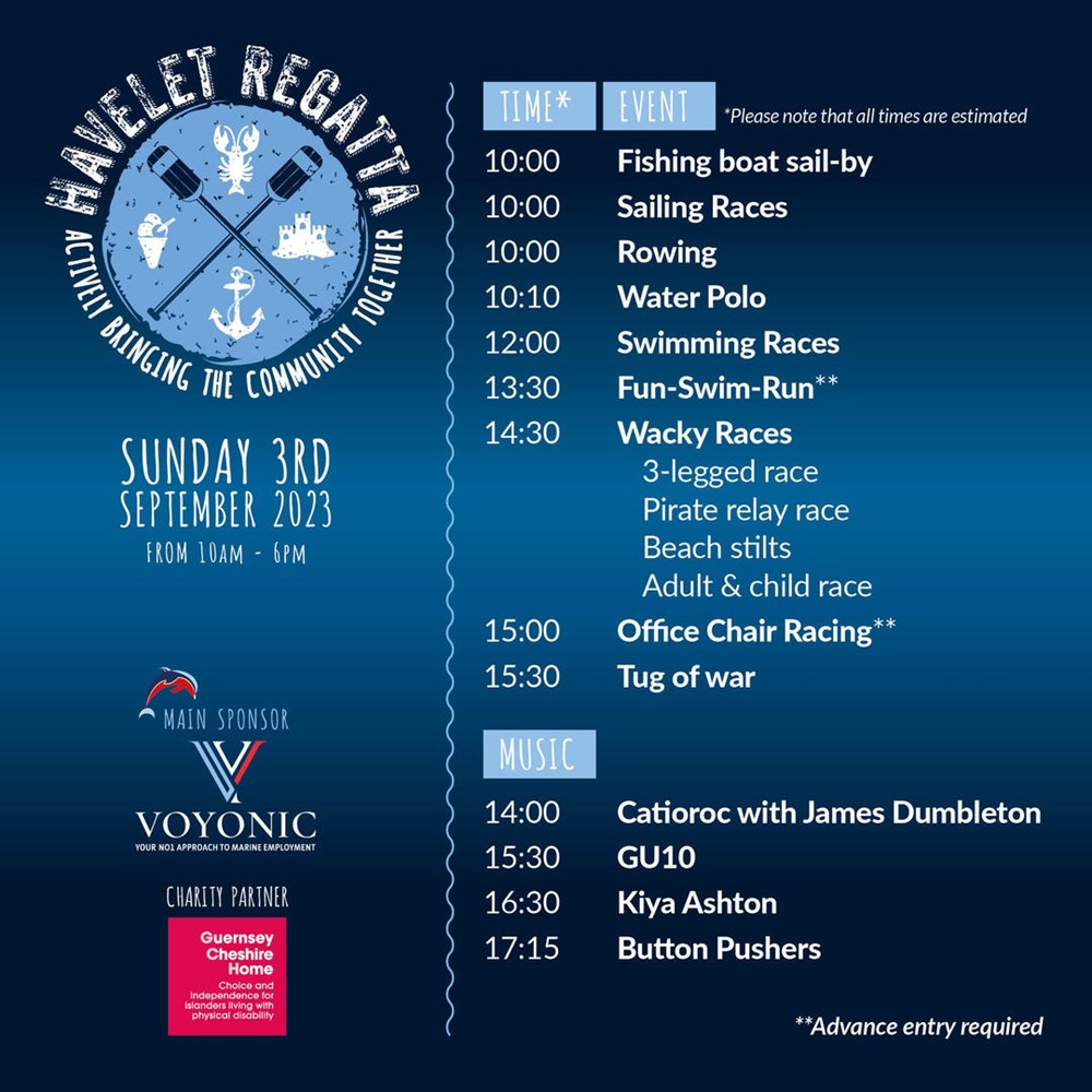 The Havelet Regatta, an exciting new event, will join St Peter Port’s calendar on Sunday 3rd September from 10am to 6pm. Supported by Voyonic Group and raising funds for the Guernsey Cheshire Home, the event will bring a variety of activities and attractions to the south of St Peter Port, on the land, sand and sea at Havelet Bay.