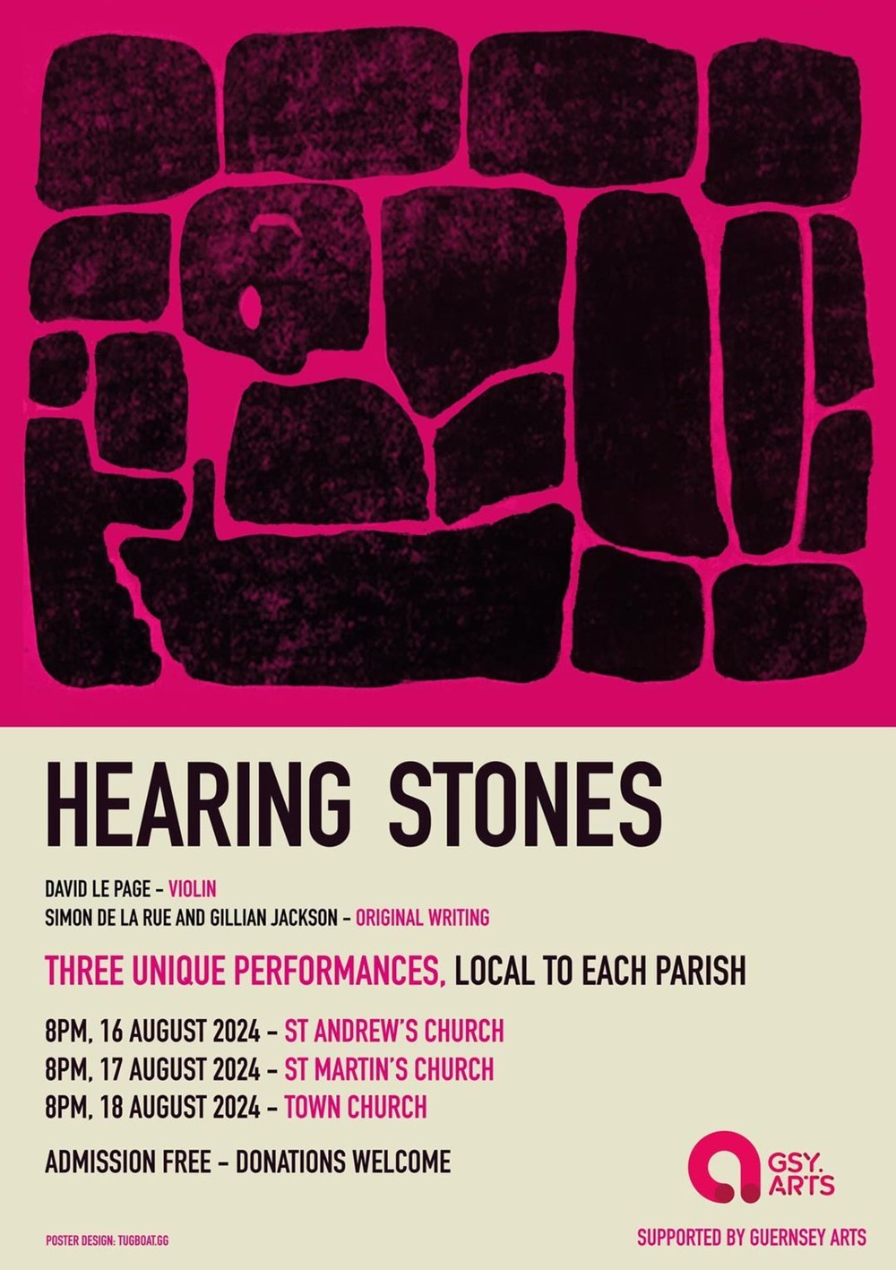 ‘Guernsey Arts is delighted to support the Hearing Stones project,’ said Head of Arts Development Russ Fossey. ‘This series brings together wonderfully talented people to
