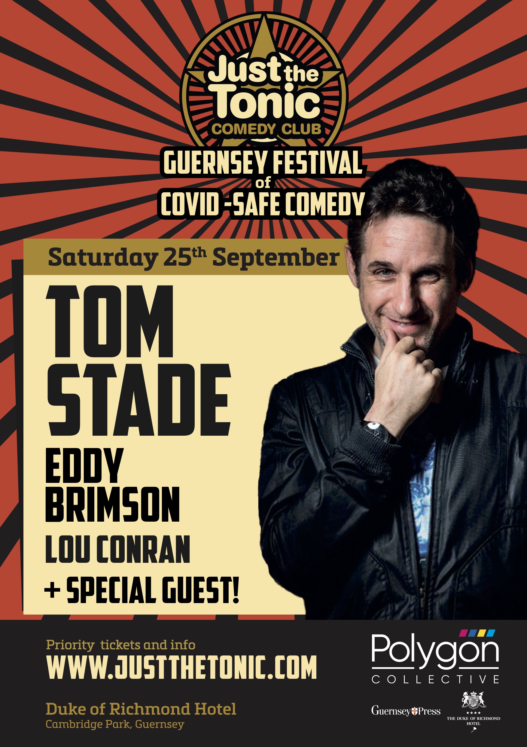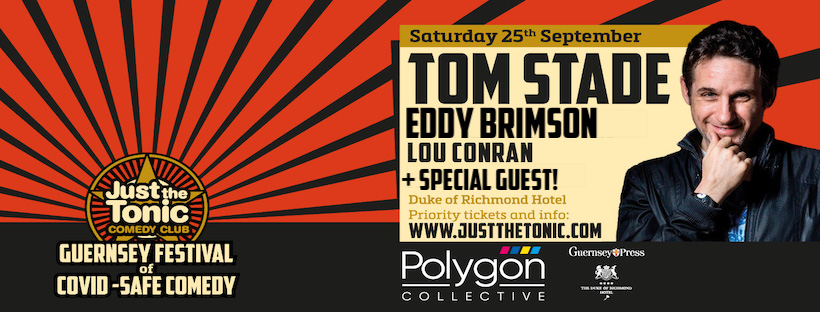 Following sell-out success of world-first ‘non-socially distanced, full capacity, live-audience’ comedy gigs in Guernsey, star of Live at The Apollo, TOM STADE performs in Guernsey this month.