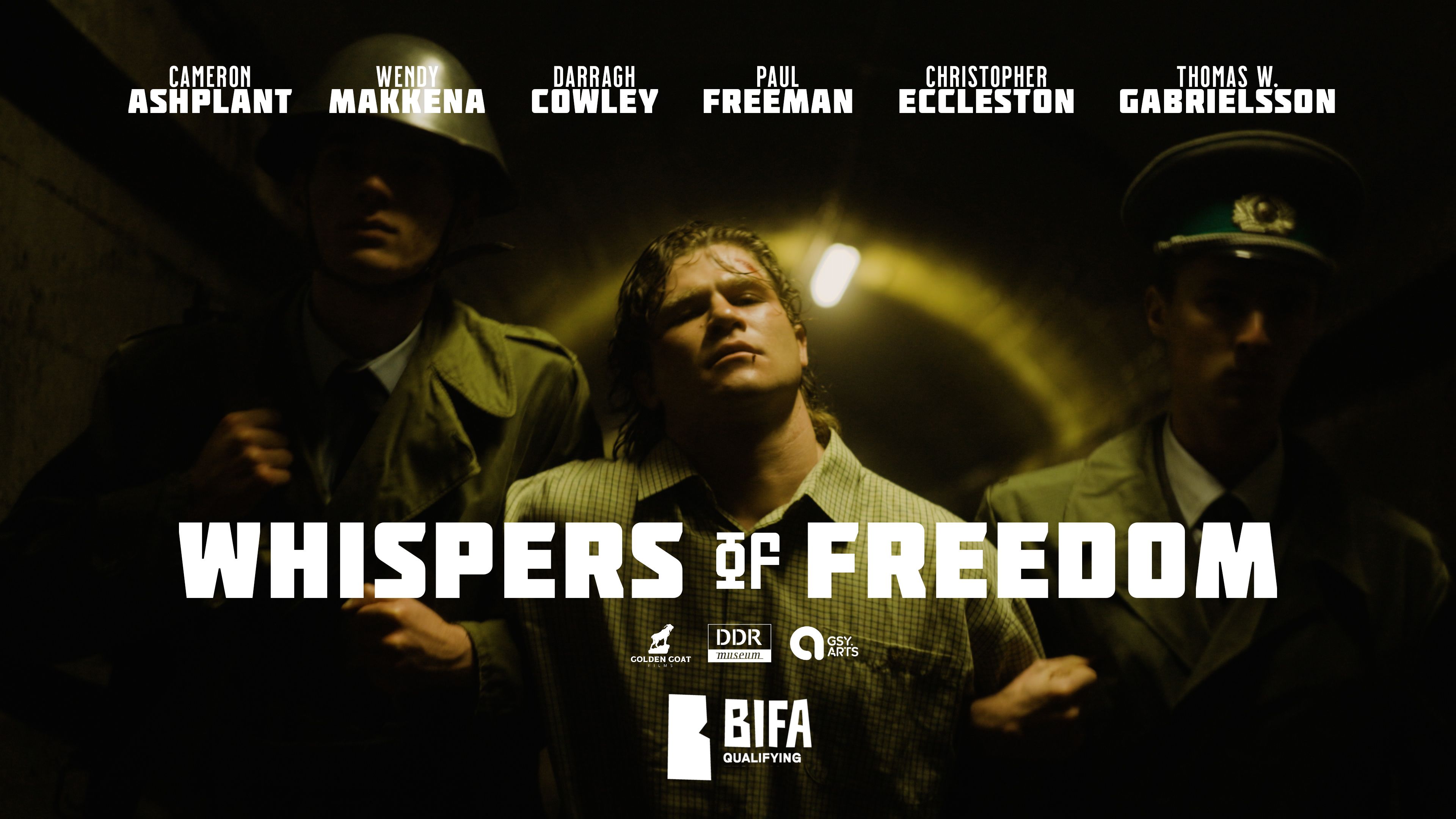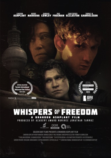 Described by Deadline Hollywood as the "tragic true story" of Chris Gueffroy, Whispers of Freedom follows one of the last daring attempts to escape across the infamous Berlin Wall. Starring Cameron Ashplant (The Last Bus), Wendy Makkena (Sister Act), Darragh Cowley (Masters of the Air) and a roster of local actors, the film is written and directed by local filmmaker Brandon Ashplant and produced by Academy Award® nominee Jonathan Tammuz.