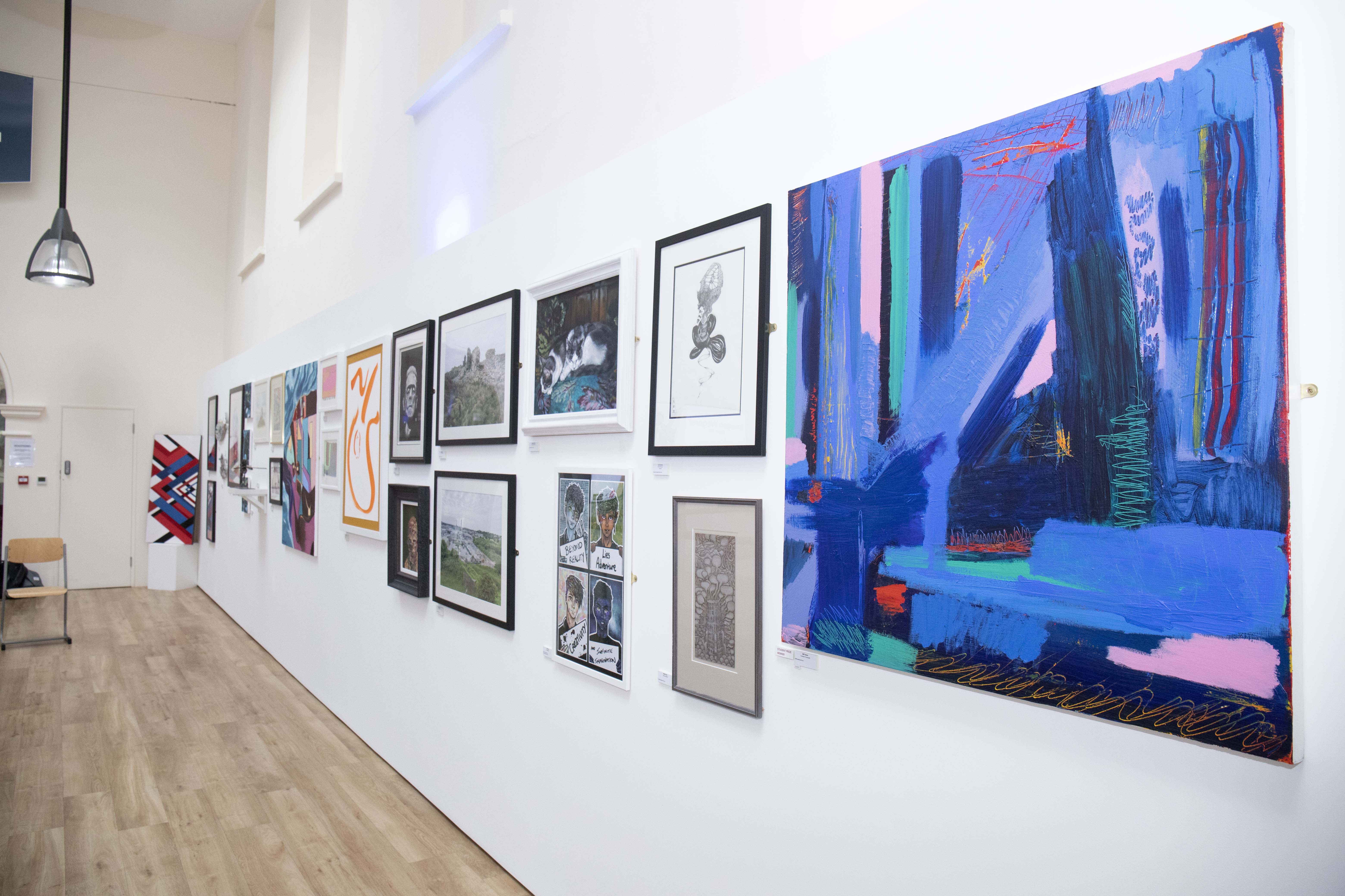 A result of an open competition where 83 artists submitted 240 artworks, this exhibition features 61 of these artists work physically in the gallery, with all 240 artworks displayed digitally. In the face of the global pandemic, many more people looked to the arts for comfort and to provide a form of expression and escapism; the importance of the arts and creativity was made very clear in this time as the community had a chance to slow down and take time to discover or rediscover artistic hobbies and skills. The array of positivity and enrichment the arts provide is reflected in a number of pieces here today.